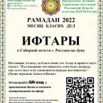 Ставшие уже доброй традицией в месяце Рамадан, ифтары-разговения для нуждающихся, возобновились в Соборной мечети г. Ростова-на-Дону. В ходе коллективных ифтаров собравшиеся имеют возможность общаться друг с другом, а также обсуждать насущные проблемы и пути их решения. По словам самих гостей, совместные встречи и собрания особо ценны для сплочения уммы. В завершении вечера, мусульмане совершают ночной таравих-намаз, являющийся украшением Священного Рамадана.