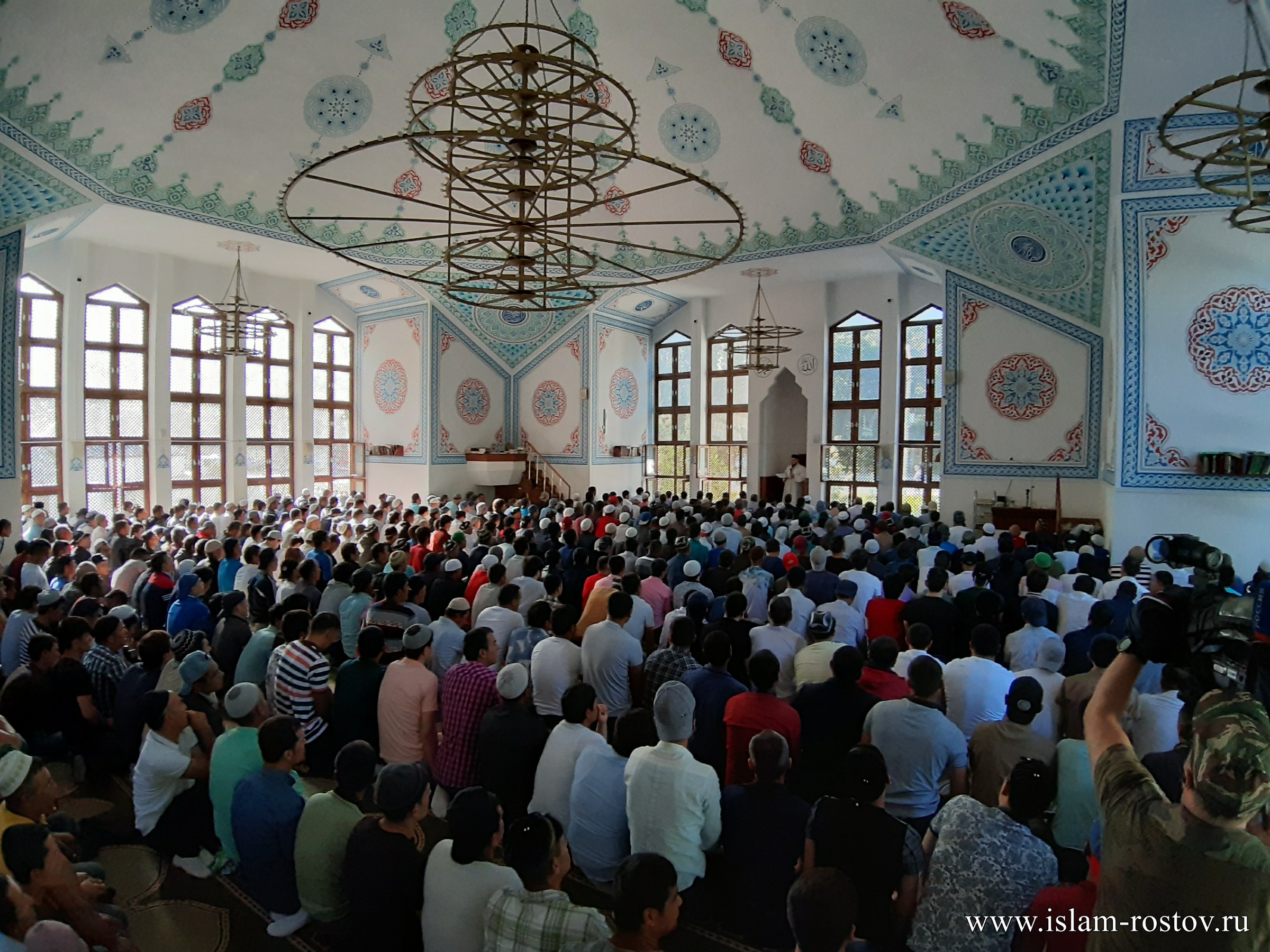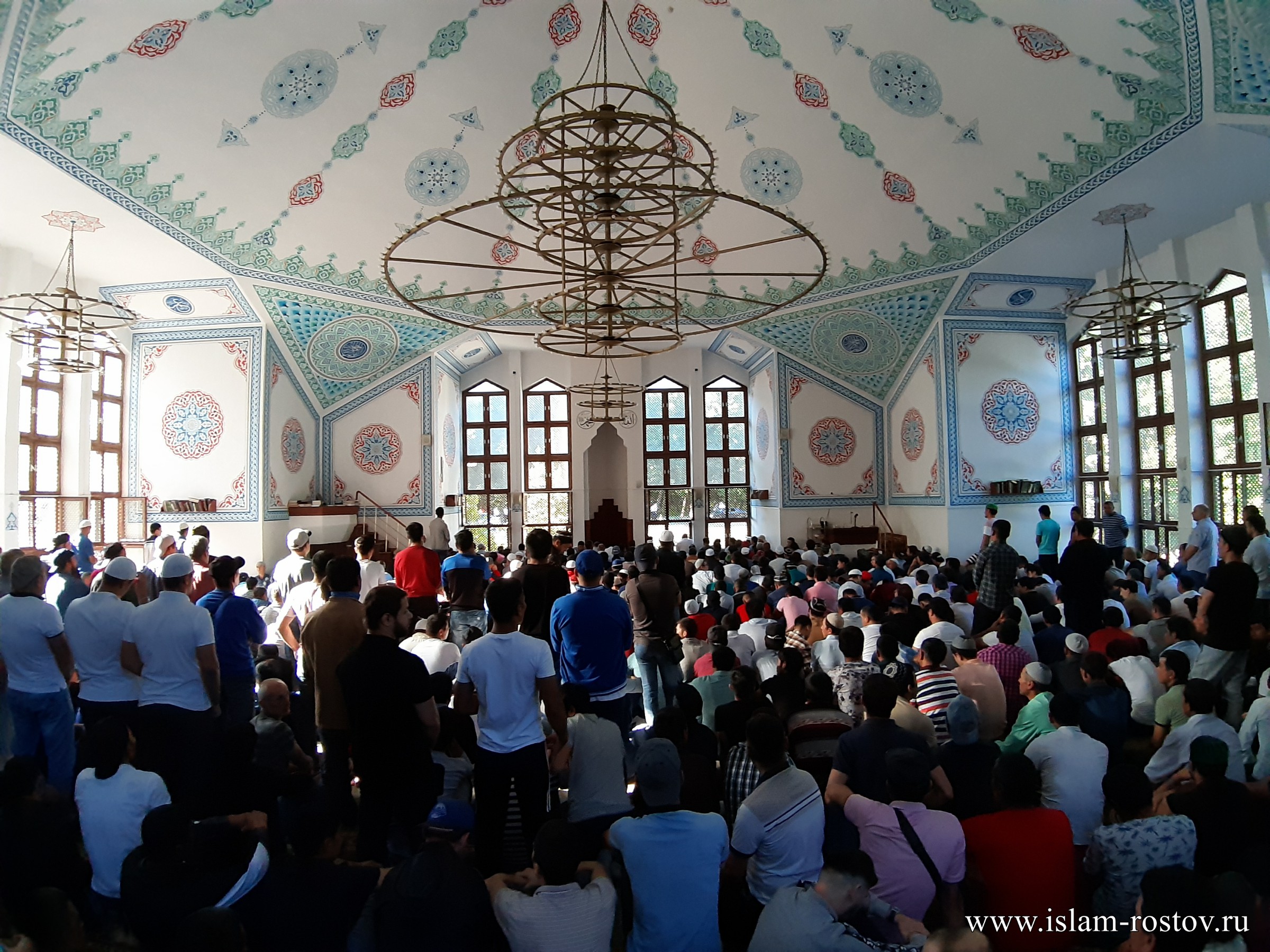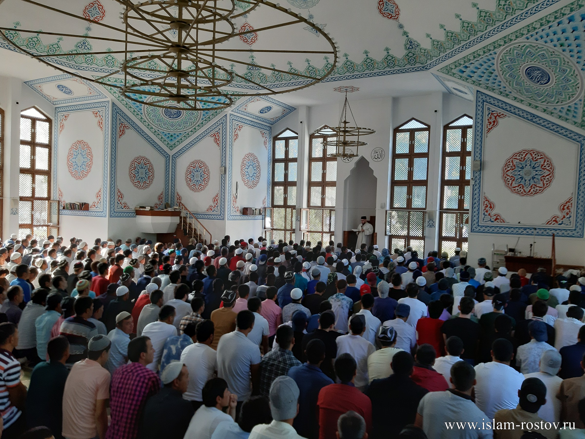 Курбан-Байрам «Ид-аль-Адха» широко отмечается во всем мире. По традиции, на праздничную проповедь и молитву люди идут в мечеть целыми семьями. В Соборной мечети г. Ростова-на-Дону особенно многолюдно, тысячи мусульман заранее занимали места для совершения праздничного коллективного намаза, читали аяты священного Корана и произносили праздничные такбиры (восхваления Аллаха).