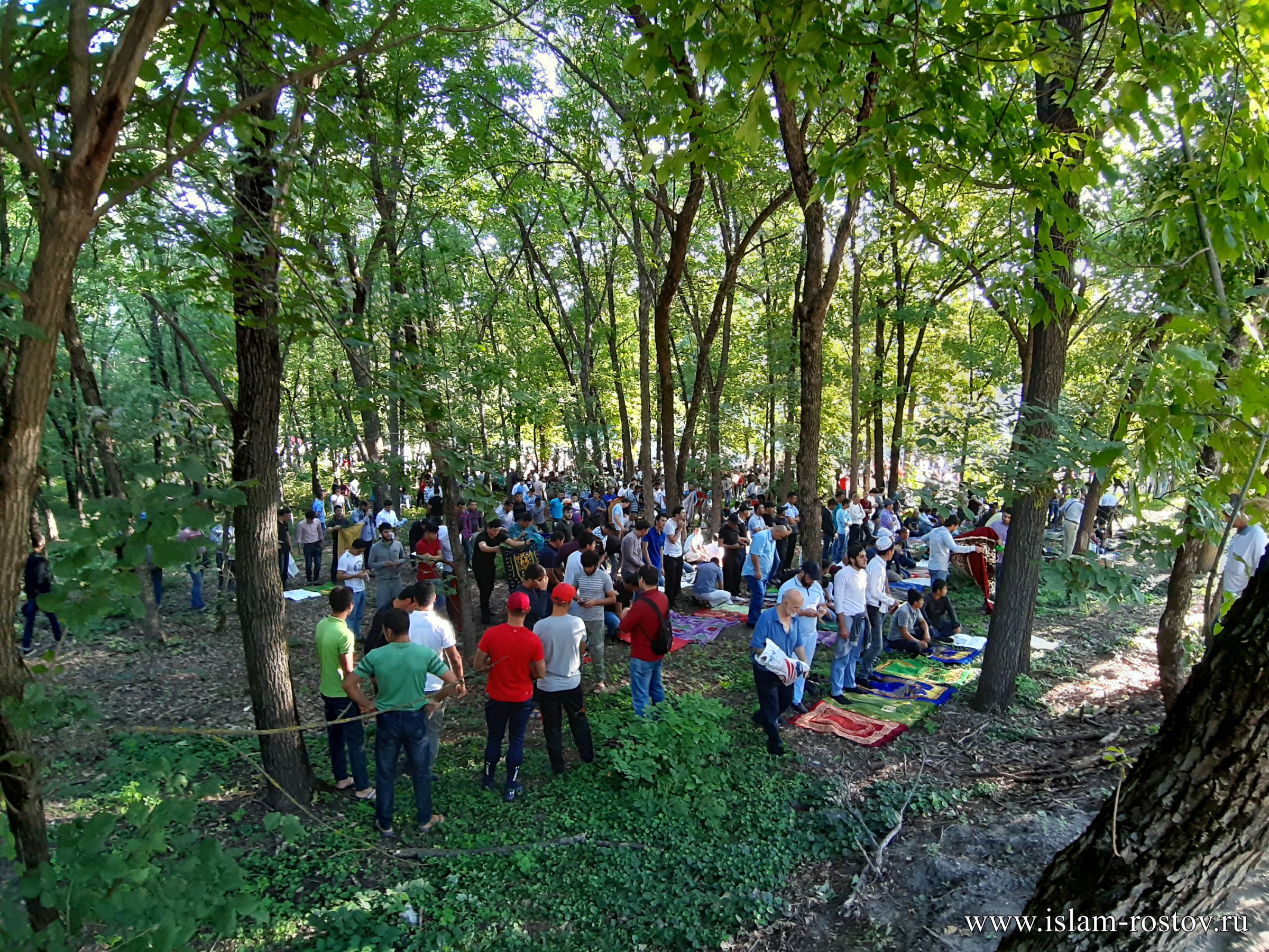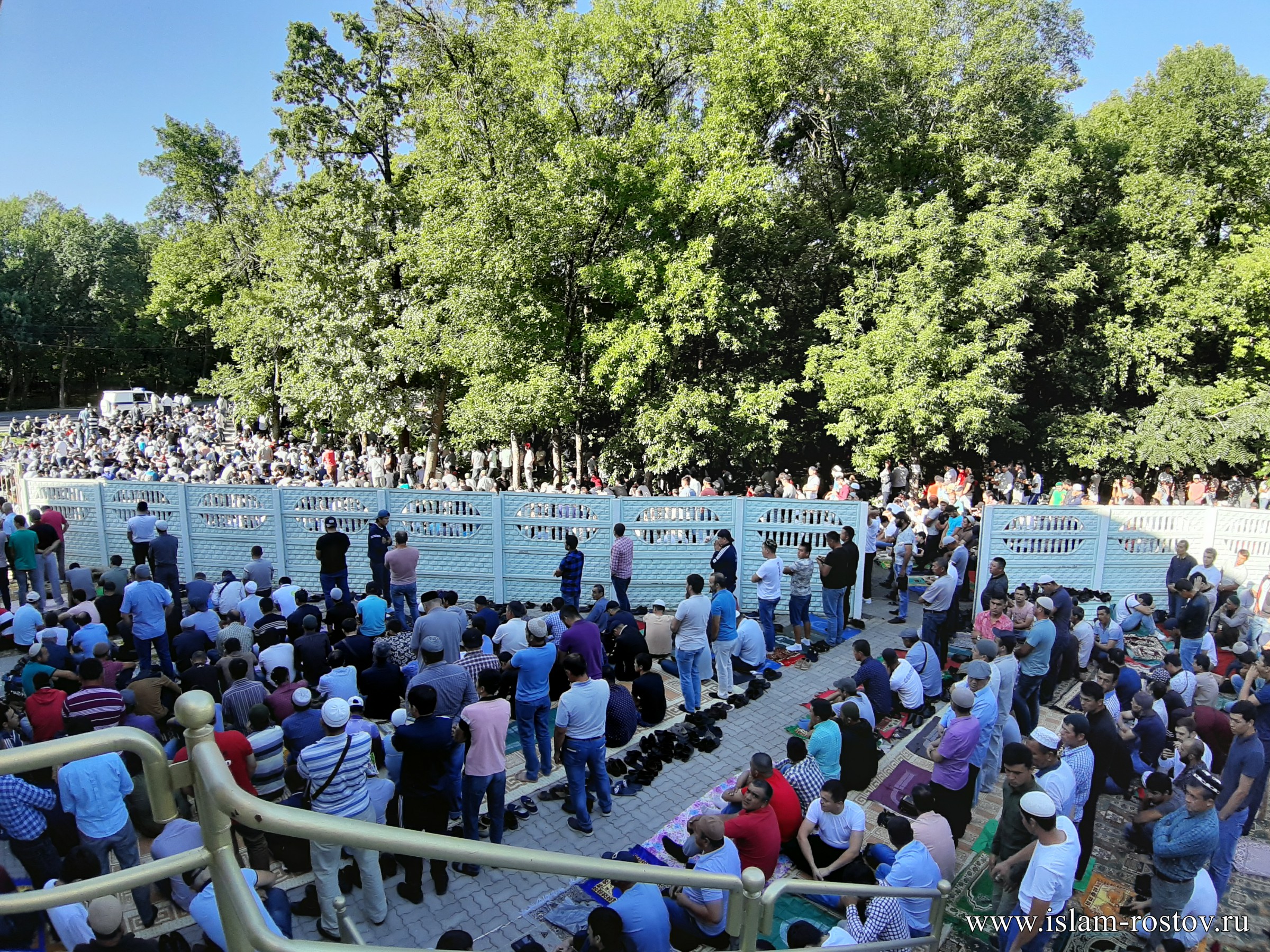 Праздничный намаз и проповедь провел имам-хатыб Ростовской соборной мечети Наиль хазрат Бикмаев. Выстроившись в ряды, верующие совершили коллективную праздничную молитву, а затем поздравили друг друга с великим праздником. В своей проповеди, имам-хатыб напомнил единоверцам о том, что этот праздник напоминает нам о традиции нашего праотца, проповедника Единобожия и любимца Всевышнего Аллаха Пророка Ибрахима (мир ему) и символизирует собой истинную покорность Богу, преданность и искреннюю любовь к Нему и ко всем Его созданиям. Этот священный праздник время принятия молитв и прощения грехов искренне верующих, смягчения сердец, сближения и взаимопомощи людей, это торжество милосердия, сострадания и благотворительности.