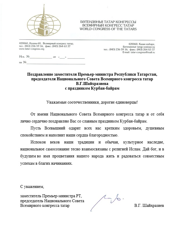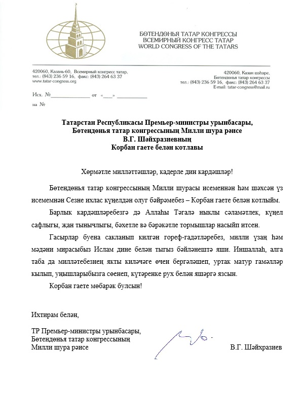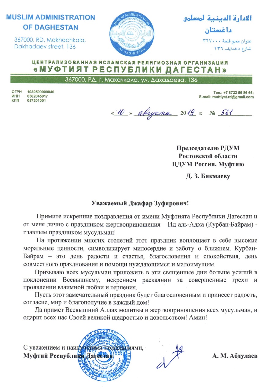 Традиционно, в адрес мусульман были направлены поздравительные телеграммы от Президента РФ В.В. Путина, Председателя Правительства России Д.А. Медведева, Губернатора Ростовской области В.Ю. Голубева, Верховного муфтия России Талгат хазрата Таджуддина а также от глав Духовных управлений мусульман различных регионов России.