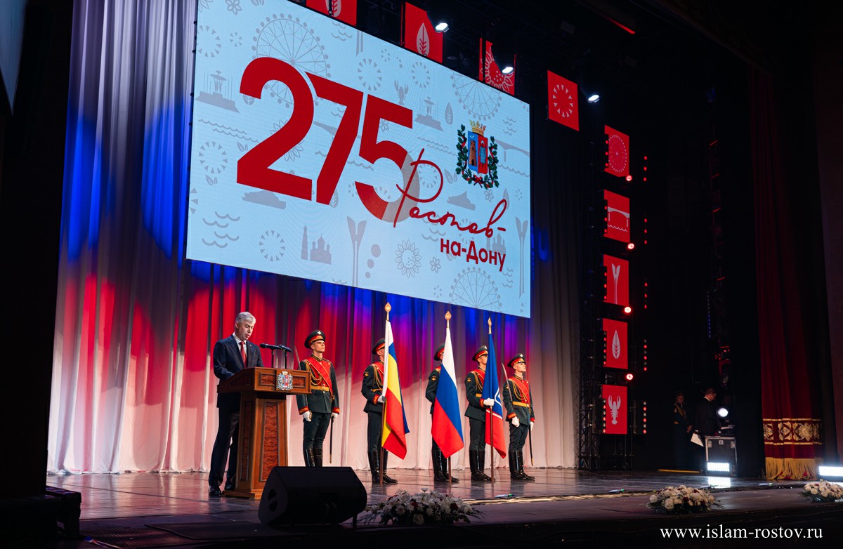 10 сентября 2024 года в Ростовском государственном музыкальном театре состоялось Торжественное собрание, посвященное 275-й годовщине со дня основания Ростова-на-Дону. В праздничном мероприятии приняли участие Заместитель полномочного представителя Президента Российской Федерации в Южном федеральном округе, Герой Российской Федерации Анатолий Сафронов, Первый заместитель Губернатора Ростовской области Игорь Гуськов, Председатель Законодательного Собрания Ростовской области Александр Ищенко, митрополит Ростовский и Новочеркасский Меркурий, председатель Центрального Духовного Управления мусульман Ростовской области, Главный имам-ахунд Мухаммед хазрат Бикмаев, депутаты, Почетные граждане Ростова, ветераны, Герои России, представители трудовых династий, актив молодежи.