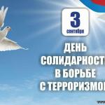 День солидарности в борьбе с терроризмом приурочен к трагическим событиям, произошедшим 20 лет назад, 1-3 сентября 2004 года, в городе Беслане (Северная Осетия), когда в результате беспрецедентного по своей жестокости террористического акта погибли более 300 человек, в основном женщины и дети.
