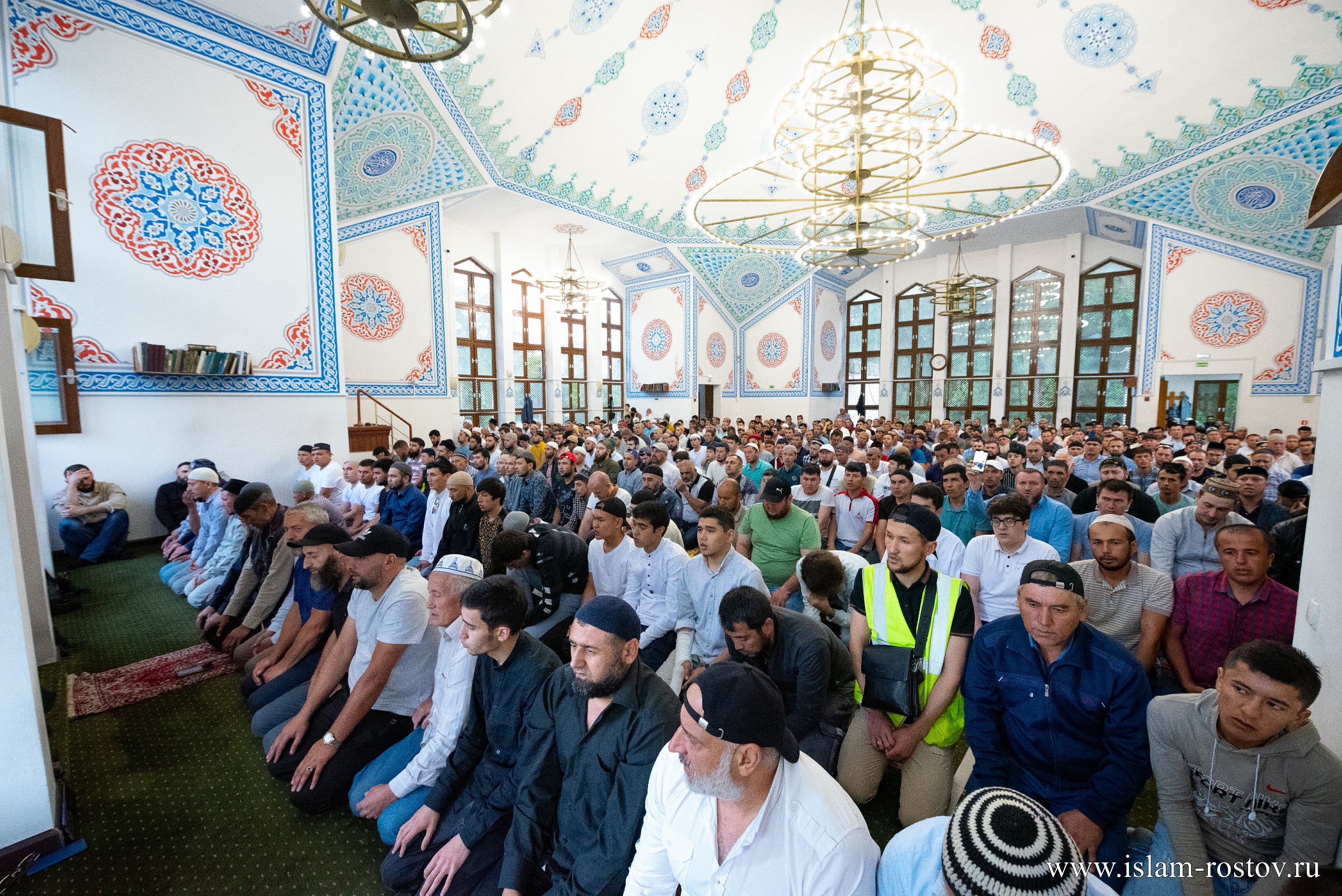 Приветствуя собравшихся, глава Центрального Духовного Управления мусульман Ростовской области Мухаммед хазрат Бикмаев, провёл коллективную праздничную молитву, а затем в своей праздничной проповеди поздравил верующих с благословенным праздником Ид аль-Адха – Курбан-байрам! Мухаммед хазрат Бикмаев, напомнил единоверцам о том, что этот праздник напоминает нам о традиции нашего праотца, проповедника Единобожия и любимца Всевышнего Аллаха Пророка Ибрахима (мир ему) и символизирует собой истинную покорность Богу, преданность и искреннюю любовь к Нему. Этот священный праздник время принятия молитв и прощения грехов искренне верующих, смягчения сердец, сближения и взаимопомощи людей, это торжество милосердия, сострадания и благотворительности.
