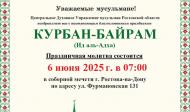 КУРБАН - БАЙРАМ состоится 6 июня 2025г. в 7:00