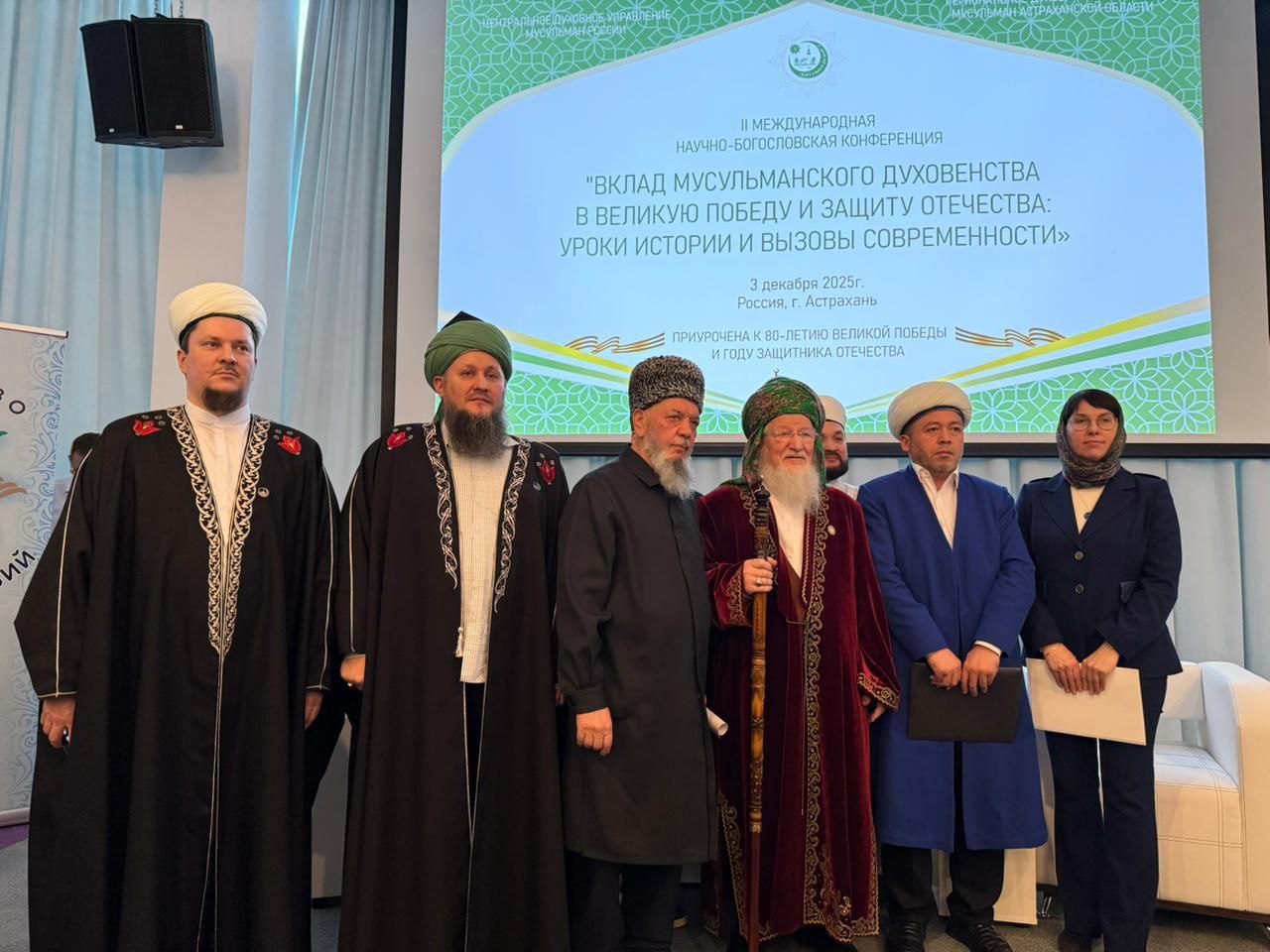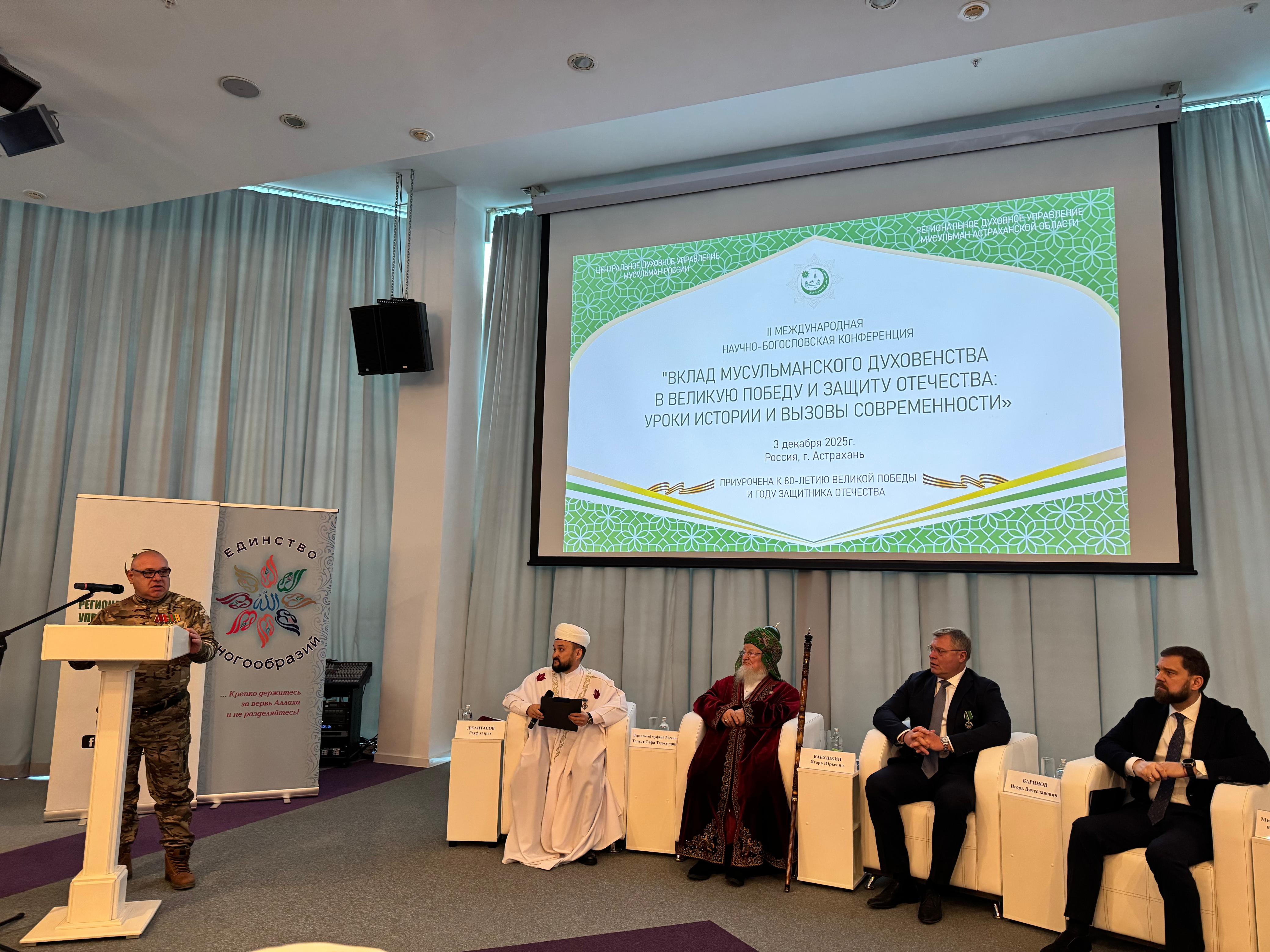 В г. Астрахань 3 декабря 2025 года состоялась II Международная научно-богословская конференция «Вклад мусульманского духовенства в Великую Победу и защиту Отечества: уроки истории и вызовы современности». Организатор мероприятия выступили РДУМ Астраханской области, при поддержке Администрации Губернатора Астраханской области. На конференцию прибыли руководители религиозных организаций России и ближнего зарубежья, представители научного сообщества, министерств и ведомств.