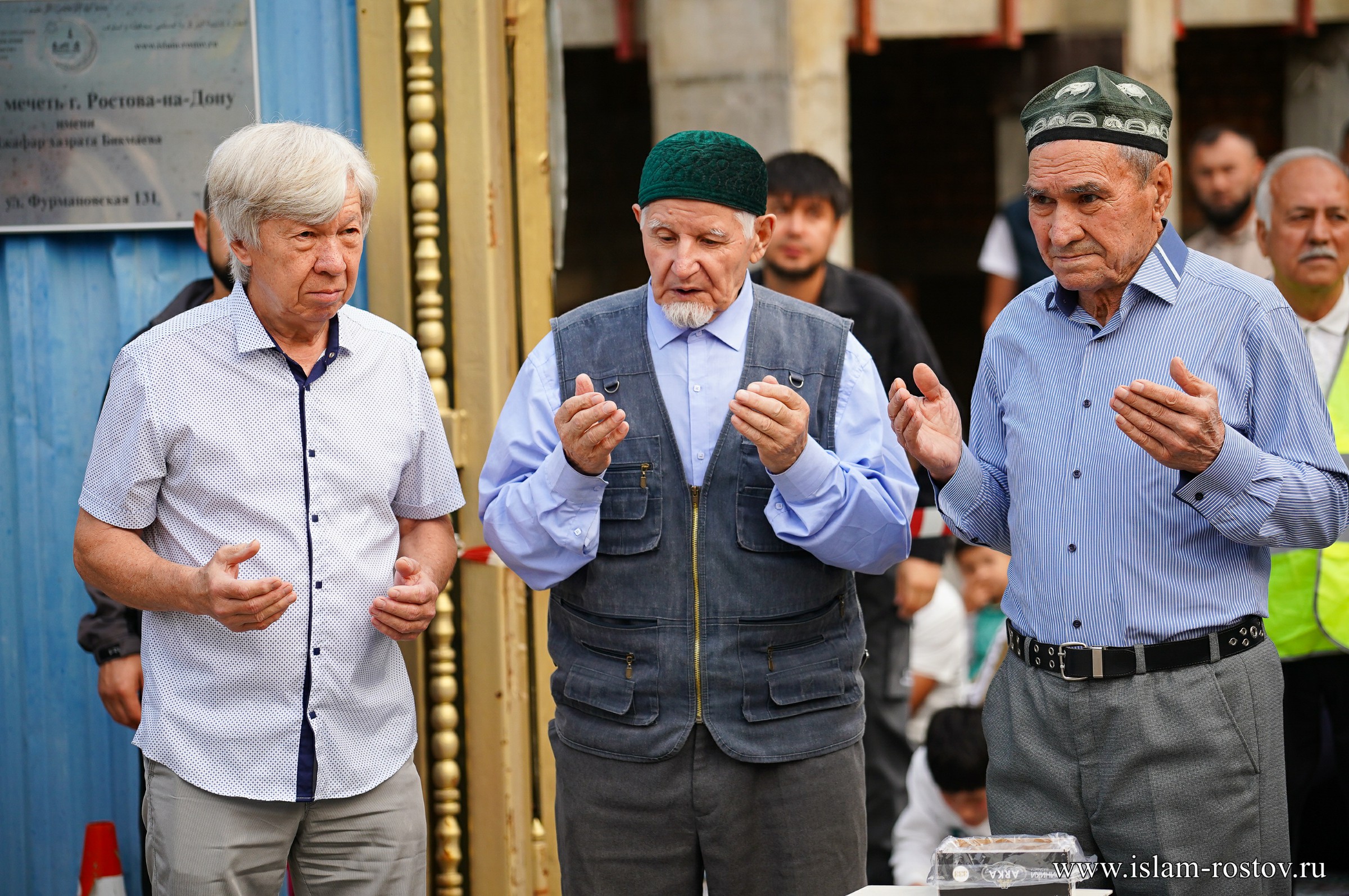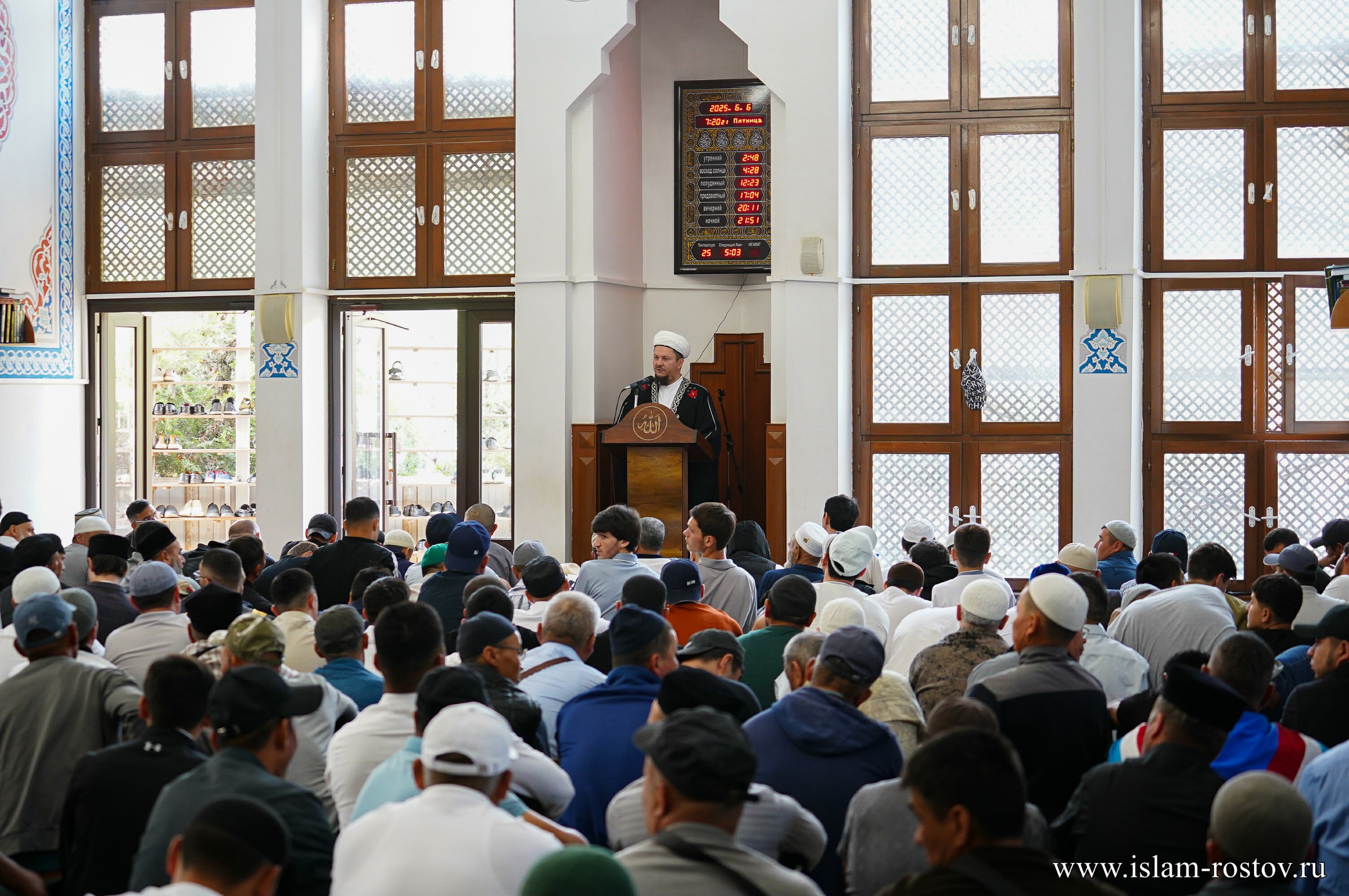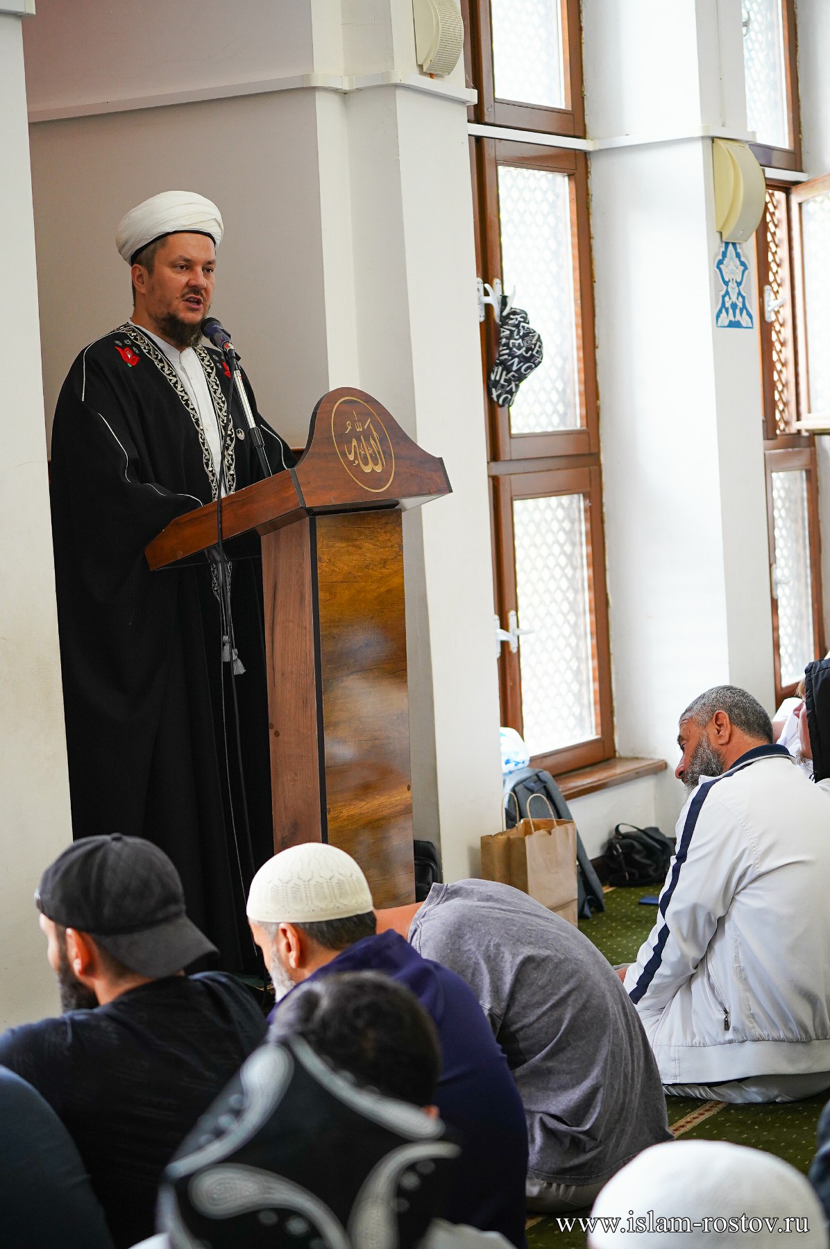 Приветствуя собравшихся, глава Центрального Духовного Управления мусульман Ростовской области Мухаммед хазрат Бикмаев, провёл коллективную праздничную молитву, а затем в своей праздничной проповеди поздравил верующих с благословенным праздником Ид аль-Адха – Курбан-байрам! Мухаммед хазрат Бикмаев, напомнил единоверцам о том, что этот праздник напоминает нам о традиции нашего праотца, проповедника Единобожия и любимца Всевышнего Аллаха Пророка Ибрахима (мир ему) и символизирует собой истинную покорность Богу, преданность и искреннюю любовь к Нему. Этот священный праздник время принятия молитв и прощения грехов искренне верующих, смягчения сердец, сближения и взаимопомощи людей, это торжество милосердия, сострадания и благотворительности.