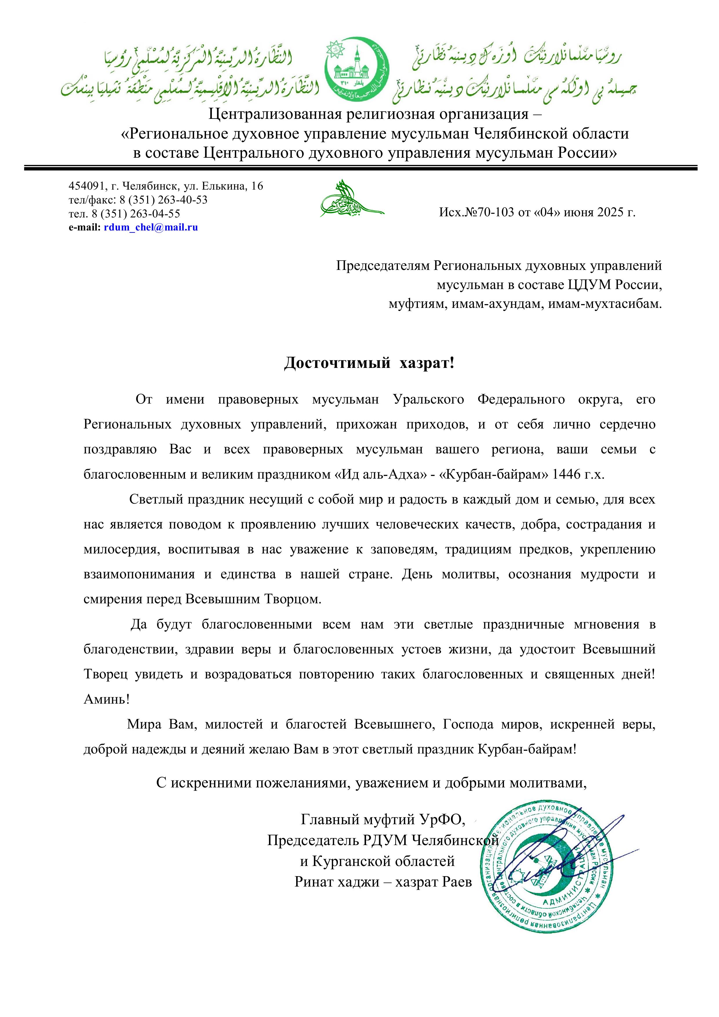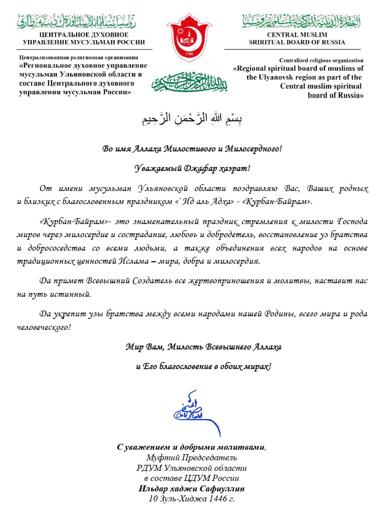 С благословенным праздником «Курбан-Байрам» (Ид-аль-Адха) 2025!